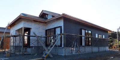 今日は「北阿保の家」に行った。瓦と外壁の工事中。