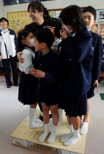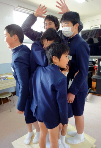 まず一人目の子供が板に乗り、続いて二人目、三人目・・・