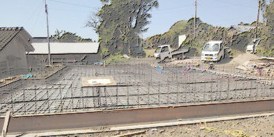 - <<「立テ山の家」基礎底盤打設