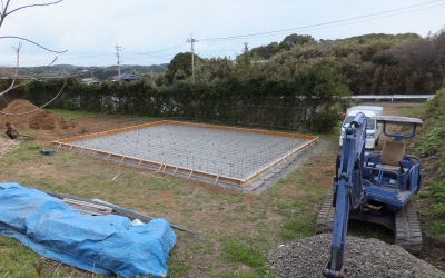 「下田の倉庫」は基礎配筋ができ、天候をみて生コン打設予定