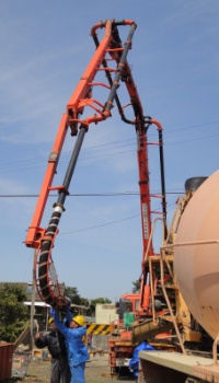 その後ポンプ車で生コン打設が始まった。