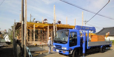 「勢利牟田の家」は1階建て方。明日は2階部分にかかる。