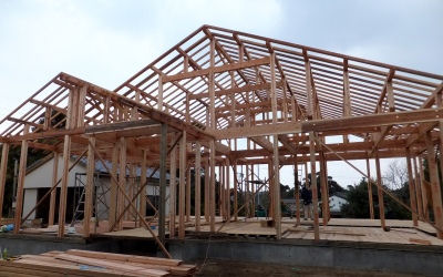今日は「堂ノ中野の家」上棟 冷たい風が吹きすさぶ中、多くのみなさんが