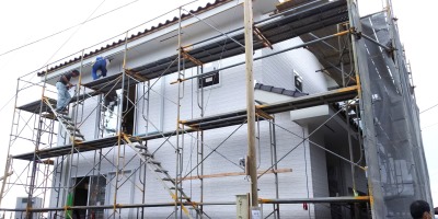 「ホワイトハウス」外壁コーキング、ユニットバス組立
