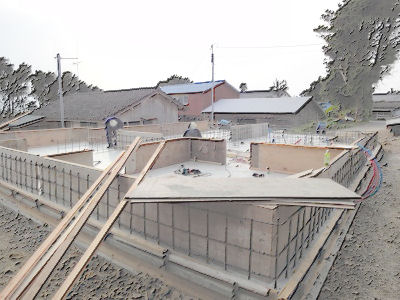 「躑躅ヵ本の家」基礎立ち上り打設済み。材料の防虫防蟻処理中でした。