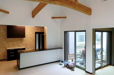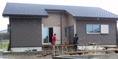 「進撃の家」完成写真撮影。大工さんはウッドデッキを追加工事中
