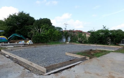 「長久保の家」は砕石敷き 基礎工事が始まった。
