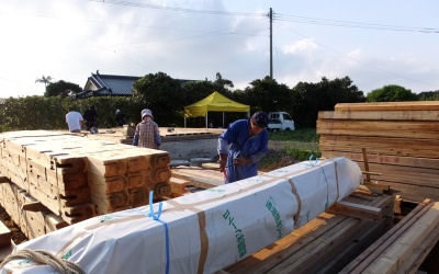 「進撃の家」は棟上げに向けて準備が進んでいる。