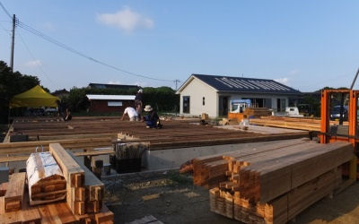 材料を防虫防蟻処理。根太を敷いて地板張り。