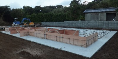 「高坂の家」は基礎立上り部分を施工中。台風の影響がなければ