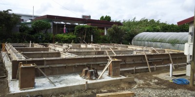 「おとうの家」は基礎生コン打設が済んで枠を外すのみ