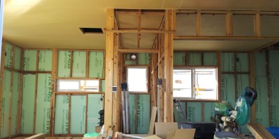 「ホワイトハウス」大工さんが軒天を施工。お父様がガレージの換気扇を設置