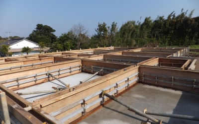 「堂ノ中野の家」は基礎立ち上がり生コン打設