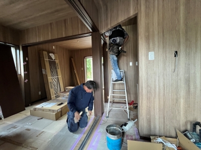 「さかえtownhouse」ウッドデッキ施工、換気扇設置、器具設置