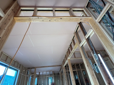 天井プラスターボード張り、足場解体、水道工事