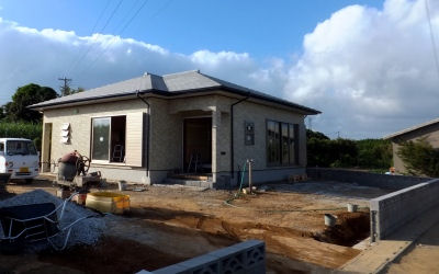 「平松の家」はパテ処理中 犬走りが今週中に完成予定。
