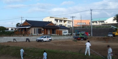 子供達の元気な声が聞こえてくる。現場は作業中。