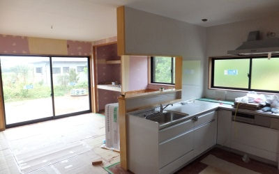 「北阿保の家」は畳が入り、クローゼットドアの取付中。