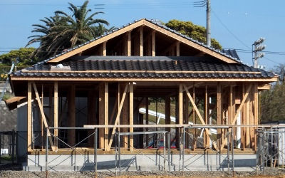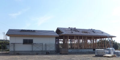 「東立久保の家」は倉庫の棟上げ