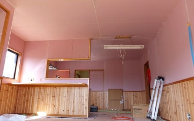 「北阿保の家」は内壁、水道工事中 完成まであと少し