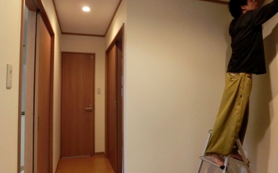 今日は「鎌田の家」完了検査申請。大工さんがカビ取り中。