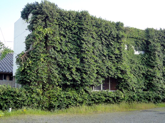 まじまじと外壁を見る・・・。まばらな緑。
