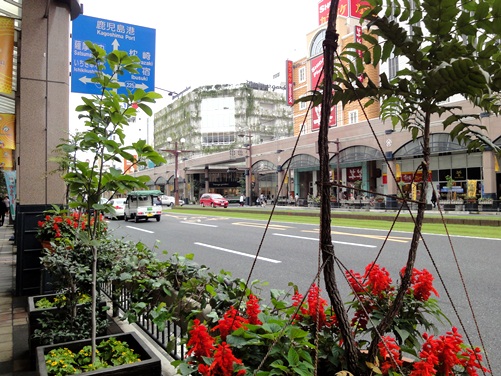 鹿児島では環境に配慮したまちづくりが盛んに行われ、路面電車の軌道敷きにも芝生が植えられている。