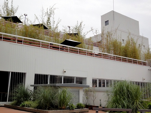 鹿児島市天文館に昨年できた「マルヤガーデンズ」は屋上や外壁が緑化されている。