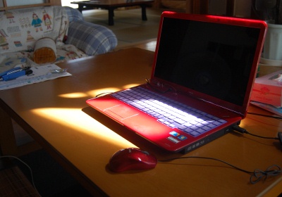 ほら、パソコンも薔薇も真っ赤に焼けてる・・・!?