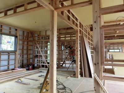 「あゆひの家」内壁プラスターボード張り