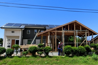 「まごの手」上棟 たる木を打ったところで終了