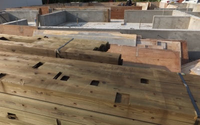 「平松の家」は倉庫筋違、金物について検査後、大工さんと打合せ。