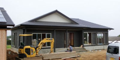 「大長野の家」の前をたまたま通りかかった。外壁と屋根が終わり