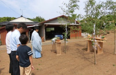 事故が無く無事完成の日を迎えられるように土地神様にお祈りしました。