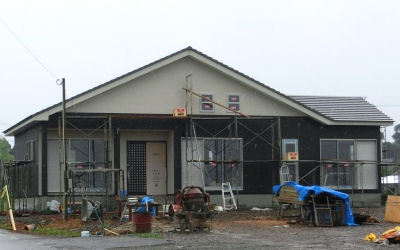 帰りに「NORIの家」の状況を見に行くと、まだ完成していなかった。