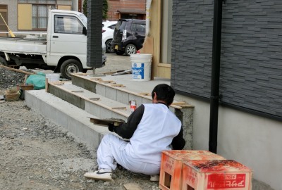 「Ms"house」玄関デザイン希望とのこと。検討中。現場は左官工事