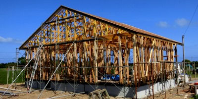 「NORIの家」上棟 爽やかな晴天。午後3時に現場の様子を見に行くと