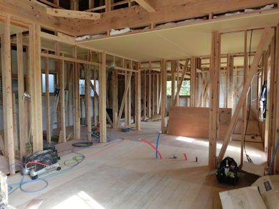 「Y倉庫」大工打合せ。お客さまと現場打合せ