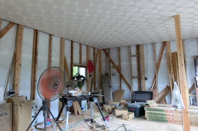 まごの手は床捨て貼り、天井が終わり、壁下地にはいる。