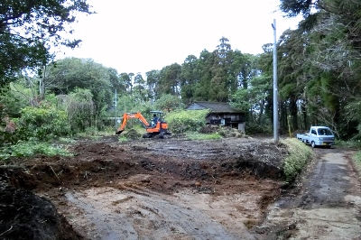 その足で「鎌田の家」へ行くと整地が始まっていた。