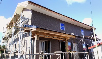 「おとうの家」現場が進んでいない状況。そろそろ外壁を仕上げて欲しい。