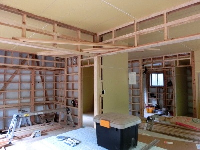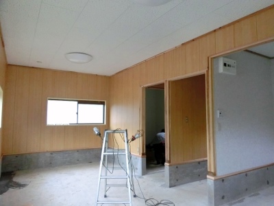「大牧の家」は内装。長尺シートを貼らないと器具が据えられないのに