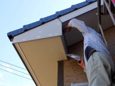 「進撃の家」はパテ詰めと塗装中。お客様のお父さんが一生懸命作業中